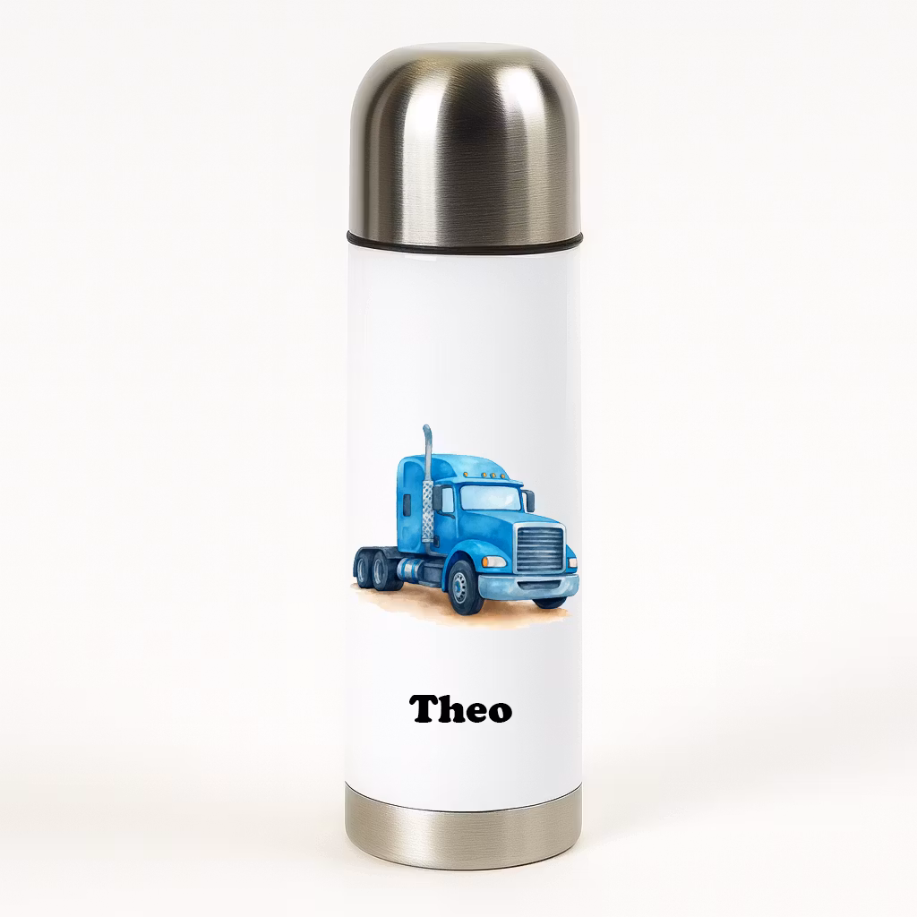 Personlig termos med olika fordon och plats för valfritt namn – perfekt för skolstarten!