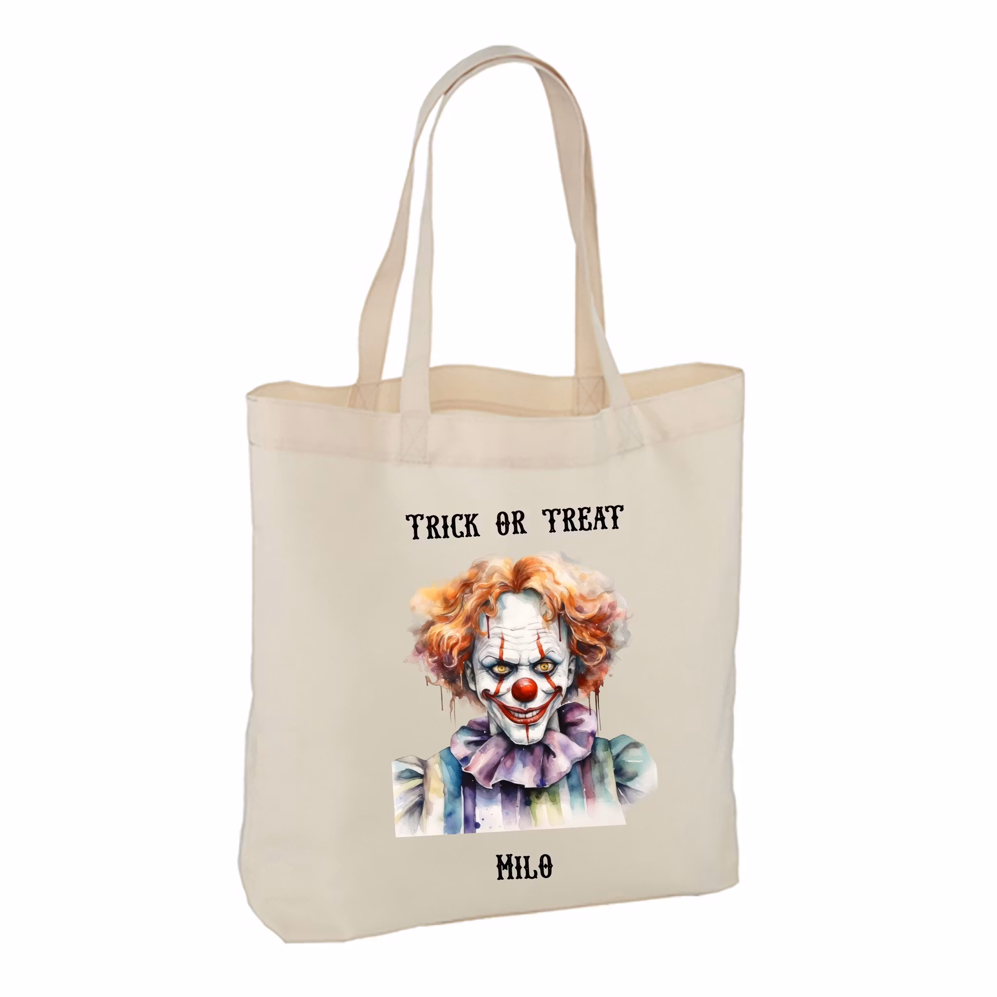 Stor och rymlig tygkasse med bred botten och halloweenmotiv.