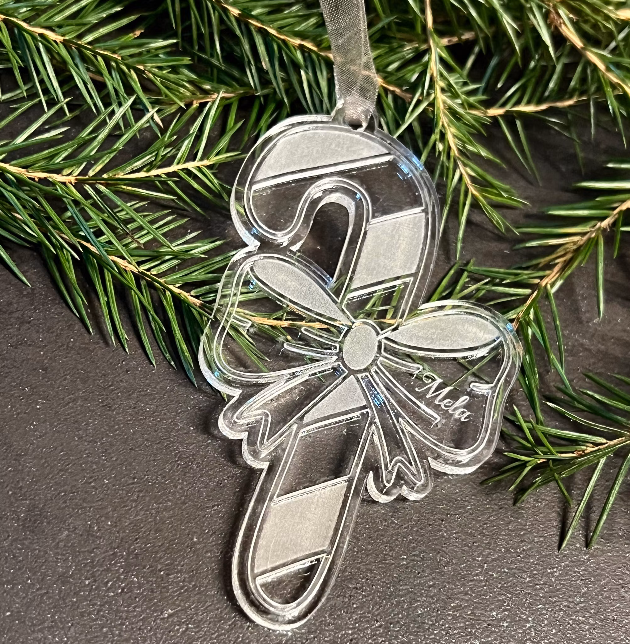 Polkastång med rosett gjord i 3mm tjock akryl.