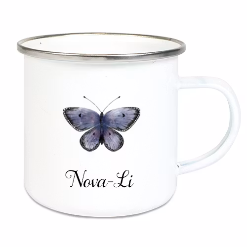 Gör emaljmuggen mer personlig genom att välja ett eget foto på andra sidan.
