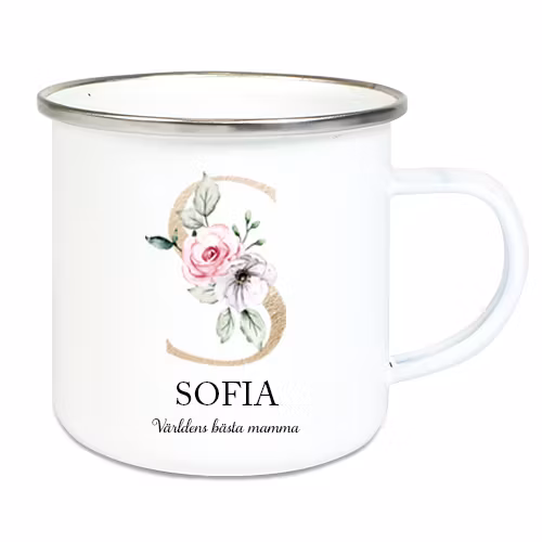 Gör emaljmuggen mer personlig genom att välja ett eget foto på andra sidan.
