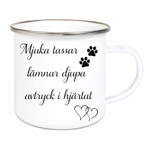 Gör emaljmuggen mer personlig genom att välja ett eget foto på andra sidan.