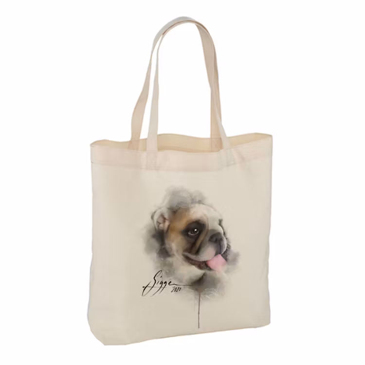 - Den naturfärgade tygkassen har långa band och en bred botten. Måtten är 48,5 x 41 cm och har en kapacitet på 18 liter.
