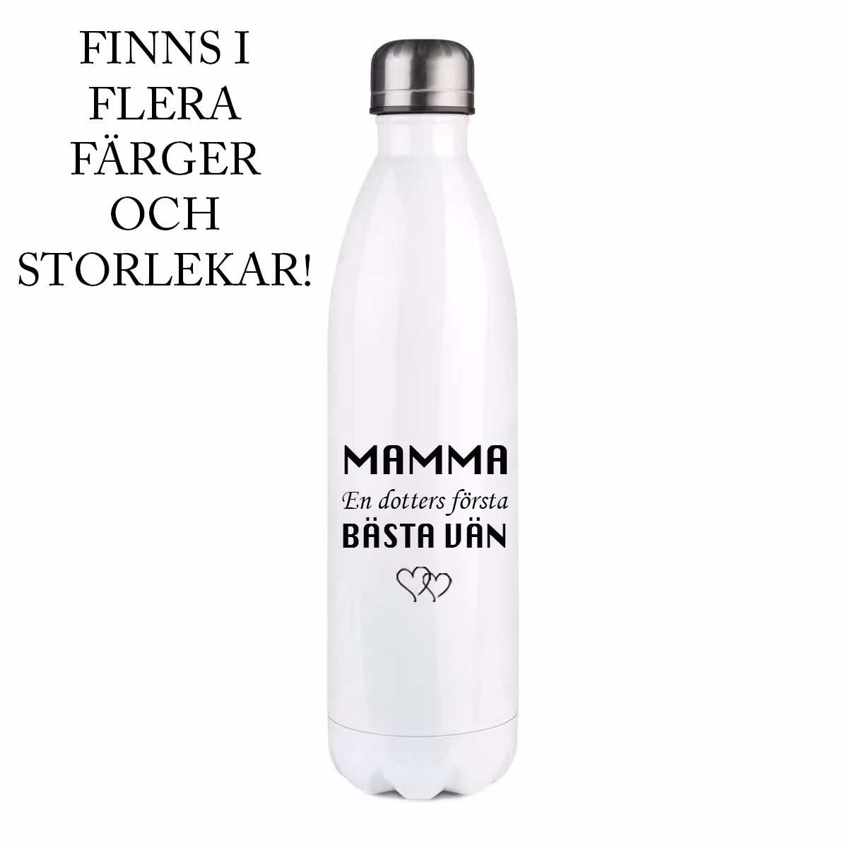 Flaskan som är 500ml finns i färgerna vit, silver, rosa/vit, mintgrön/vit, lila/vit, glittersilver, glitterrosa, glitterturkos och glitterguld