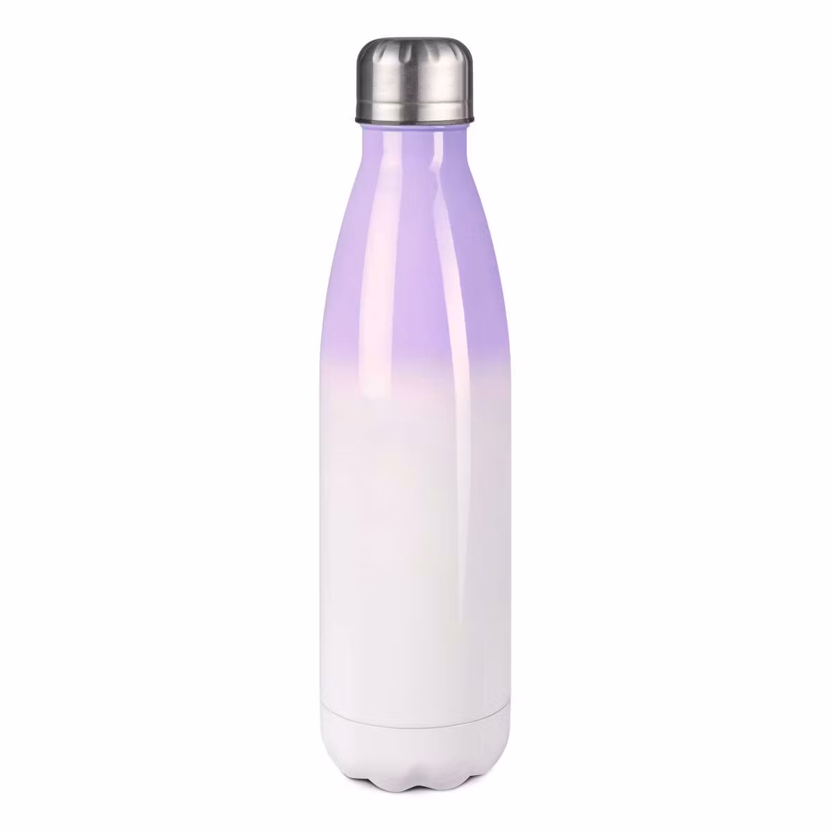 Flaskan som är 500ml finns i färgerna vit, silver, rosa/vit, mintgrön/vit, lila/vit, glittersilver, glitterrosa, glitterturkos och glitterguld