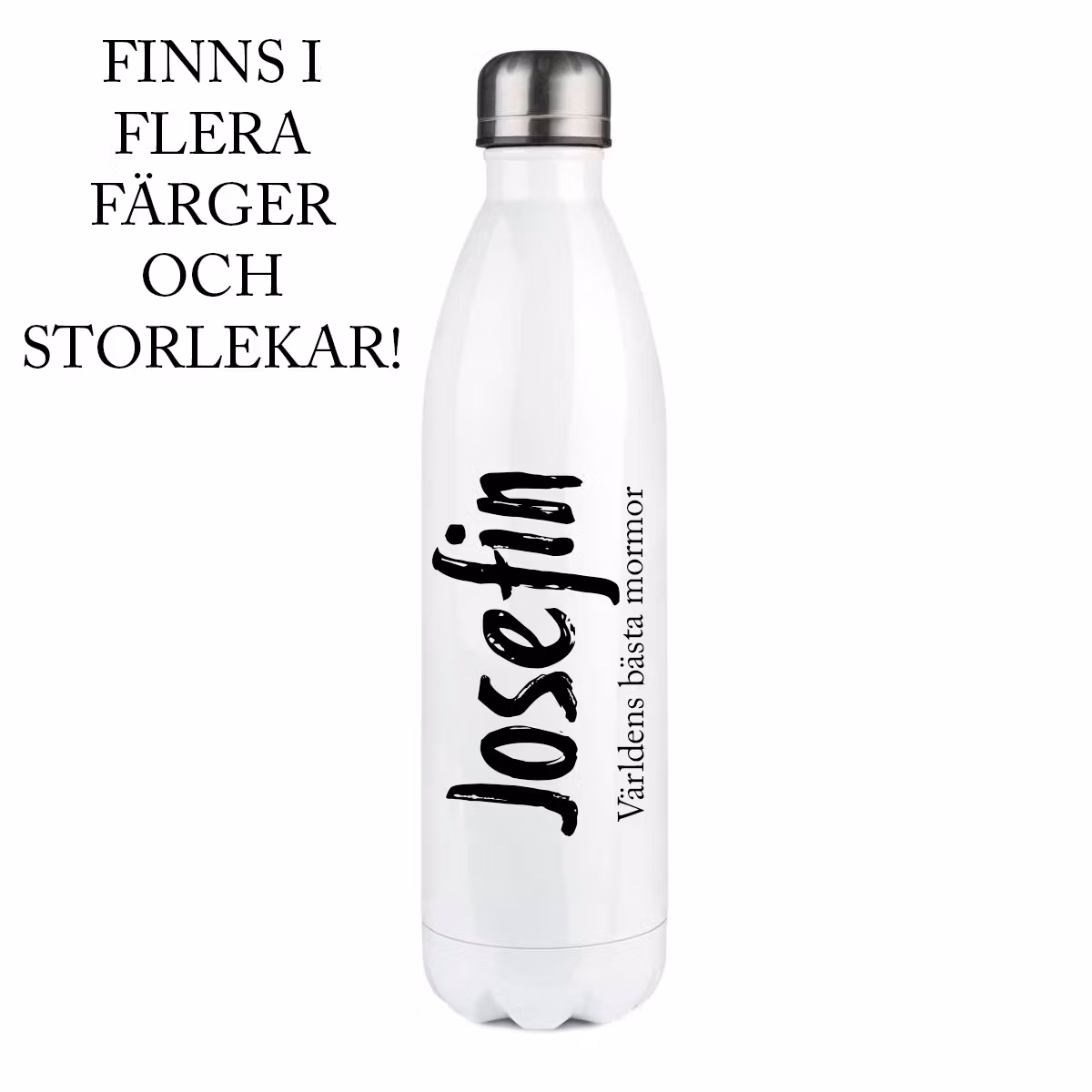 Flaskan som är 500ml finns i färgerna vit, silver, rosa/vit, mintgrön/vit, lila/vit, glittersilver, glitterrosa, glitterturkos och glitterguld
