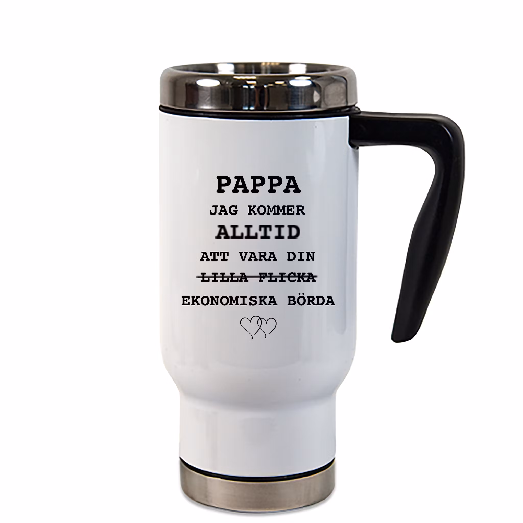 Denna termomugg är en perfekt kombination av utseende och funktion. Den avsmalnande foten gör att den passar i många hållare, med sitt praktiska handtag bär du den lätt med dig i handen. Locket är ergonomiskt utformat och har en stängbar dricköppning. Perfekt för sport, fritid eller kontor.