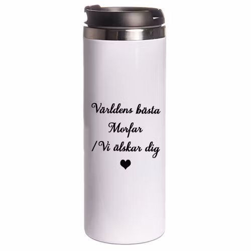 Termos med text på ena sidan och valfri bild på andra sidan.