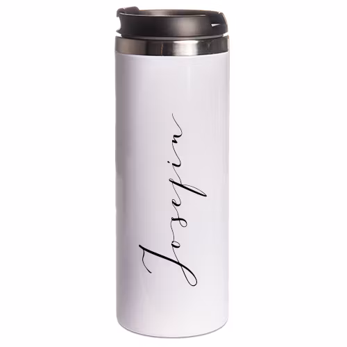 Denna raka termosmugg har en perfekt passform till så väll mugghållare som att hålla i handen,